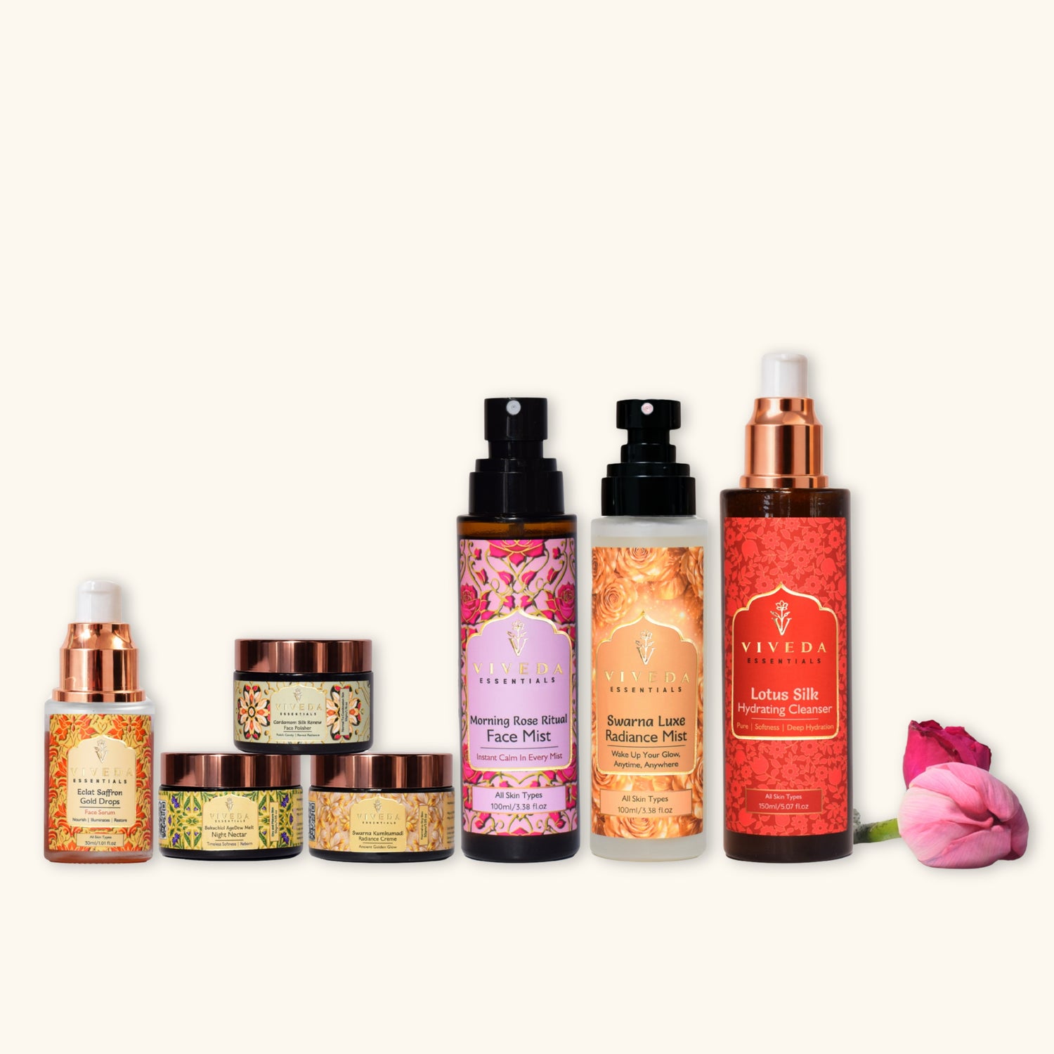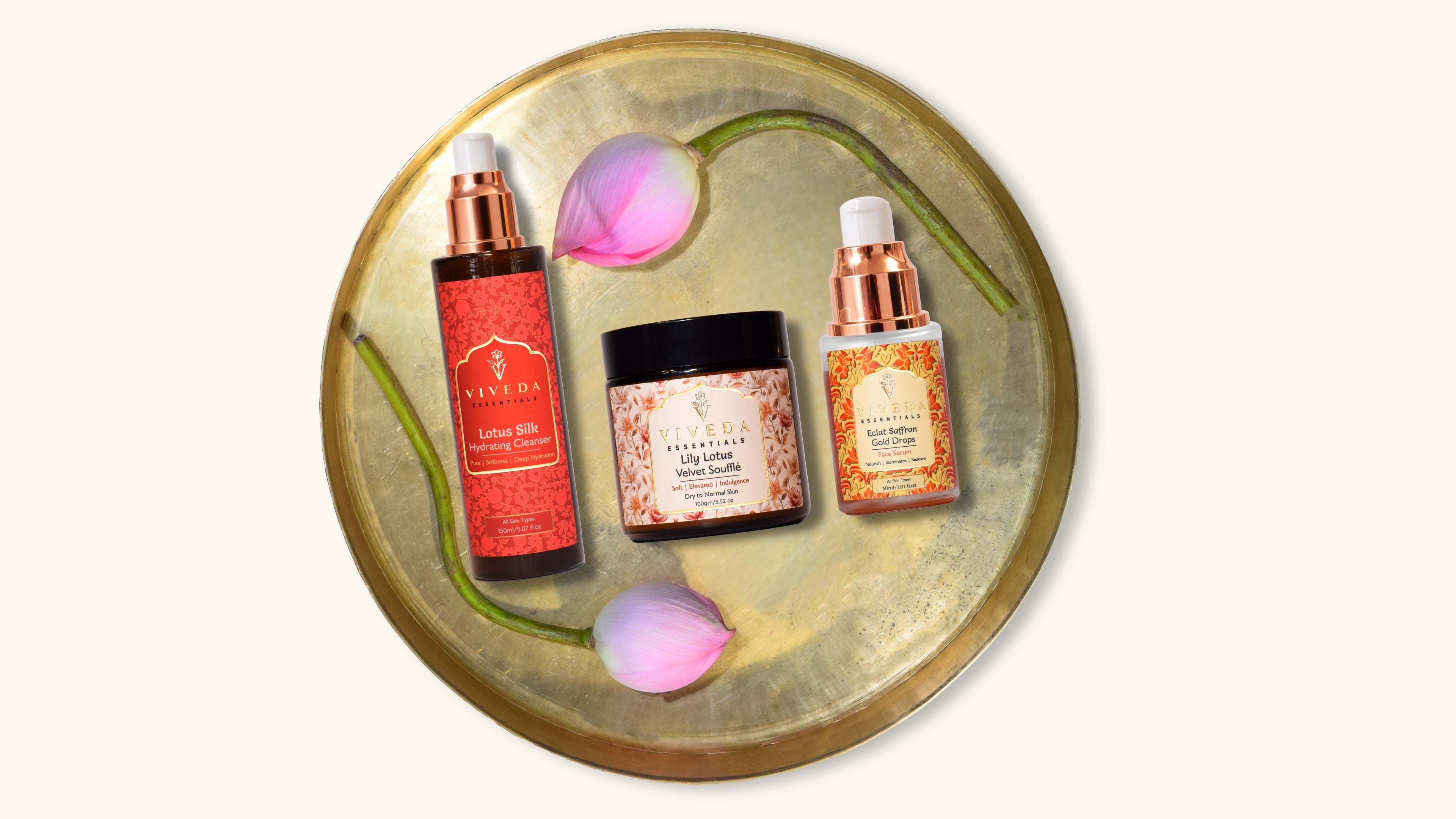 At Viveda Essentials, we honor time as the true ingredient. Nature is never hurried, and neither is skin. Our formulations seamlessly blend the depth of Ayurvedic wisdom with the precision of modern science to create skincare that is clean, effective, and deeply restorative. Organically cultivated, rigorously tested, and thoughtfully formulated—this is beauty designed to unfold at its own pace.